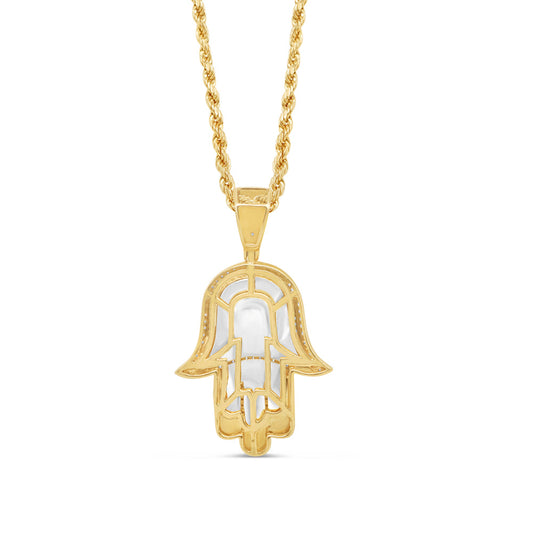 Blue Hamsa Pendant with Chain/Necklace | 14K Yellow Gold |0.46CT