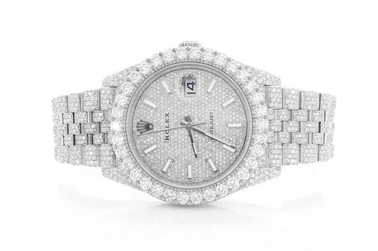 Diamond Fully Iced Out "Bust Down" Rolex Datejust Watch | 41MM | Full Diamond Dial