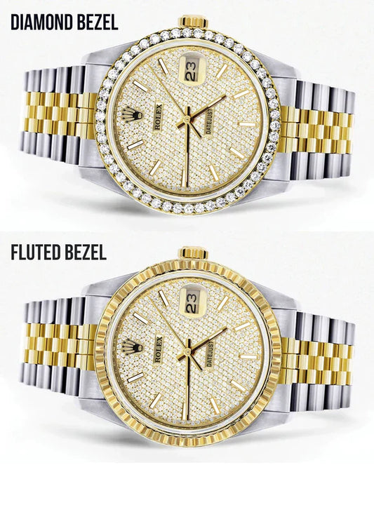Diamond Gold Rolex Datejust Watch 16233 | 36MM | Full Diamond Dial | Stainless Steel | Jubilee Band