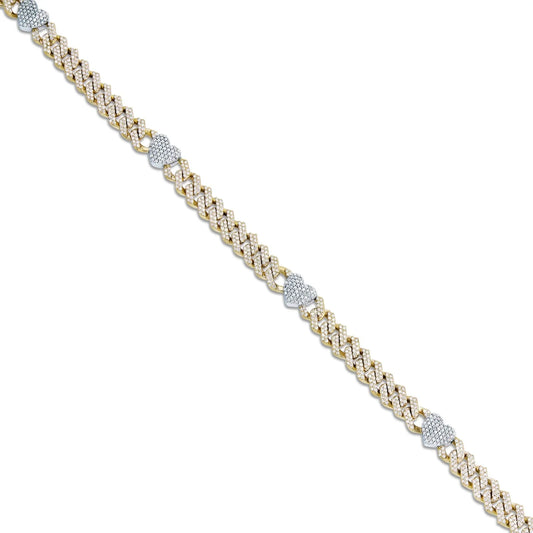 Diamond Cuban Chain with Heart Motif | 14K GOLD 4.21CTW | 4MM | 3 Color Options Available | Two Tone Available