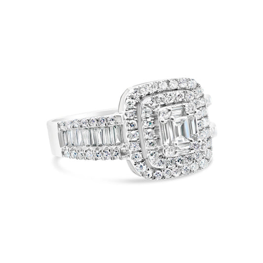 Gold Diamond Layered Square Engagement Ring | 14K | 0.9CTW