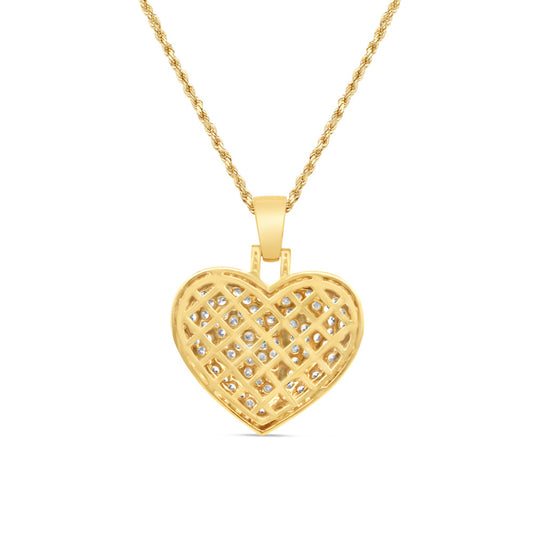 Large Heart Pendant with Necklace | 14K Yellow Gold | 28.72MM| 3.50CT