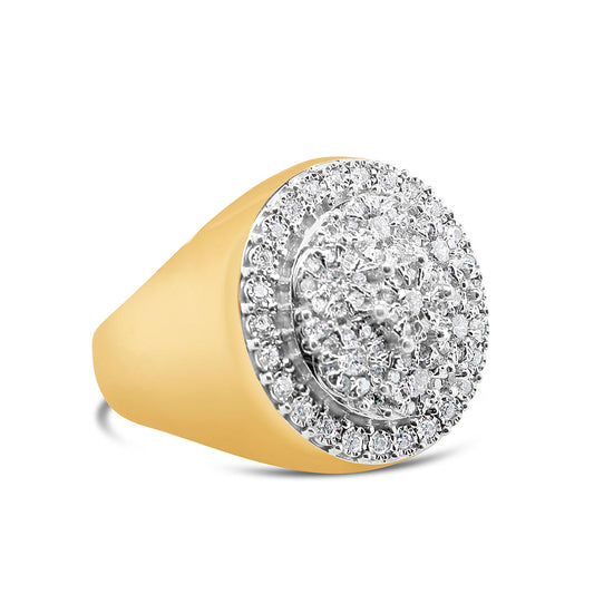 Mens Gold Diamond Big Round Pinky Ring | 10K Yellow Gold | 2.00CTW