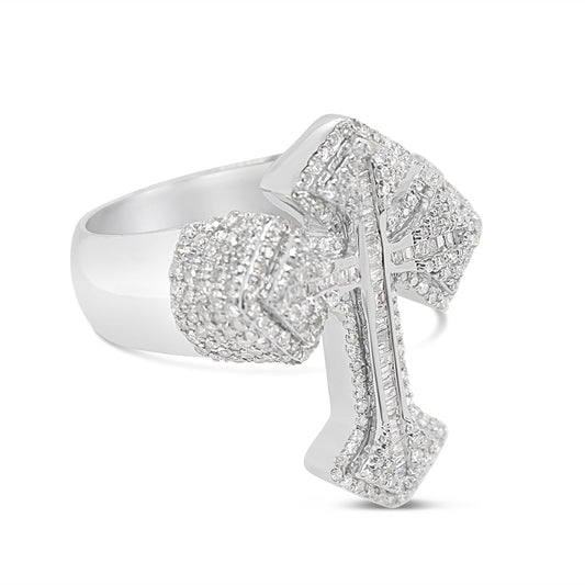 Mens Gold Round and Baguette Diamond Cross Ring | 10K | 1.48 CTW