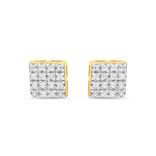 10K Yellow Gold | Diamond Square Earrings | 0.09CTW | 6.66MM