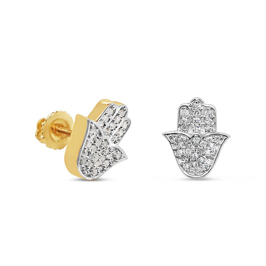 10K Yellow Gold | Diamond Hamsa Earrings | 0.20CTW | 8.84MM