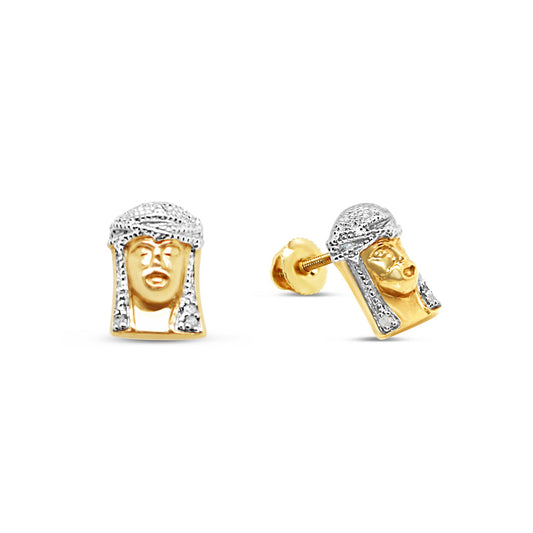 10K Yellow Gold | Diamond Jesus Earrings | 0.02CTW | 6.94MM