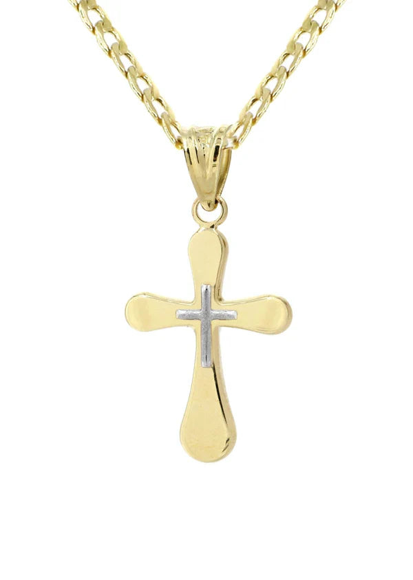 10K Gold Cuban Link And Gold Crucifix / Cross  Pendant With An Approximate Total Gram Weight Of  3 Grams. Pendant Weighs  1 Gram  And The Chain Weighs 2 Grams. The Pendant Measurement Is 12 Mm In Width And  33 Mm In Length. The  Width Of The Chain Is 2Mm And The Length Can Be Adjusted.